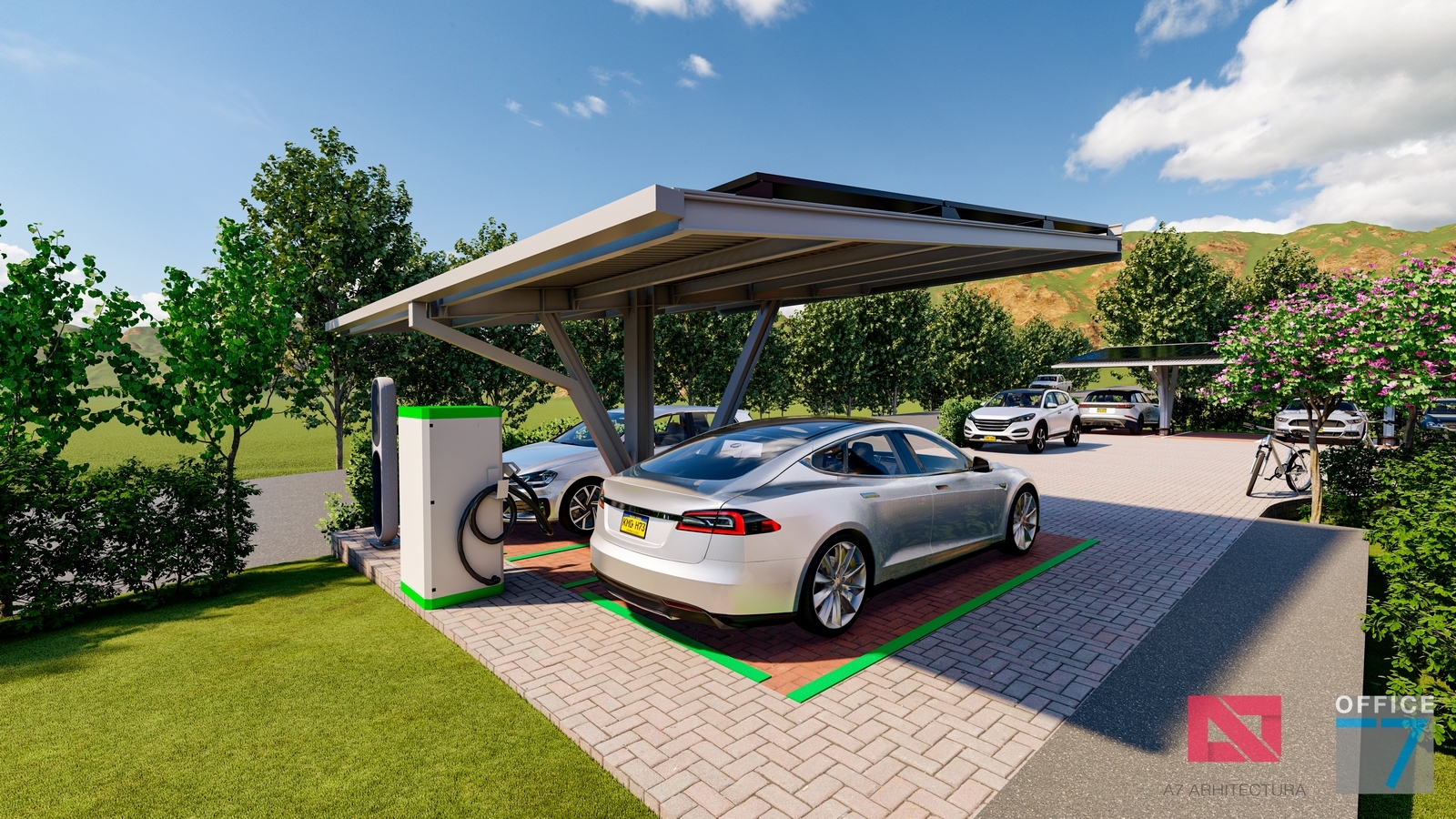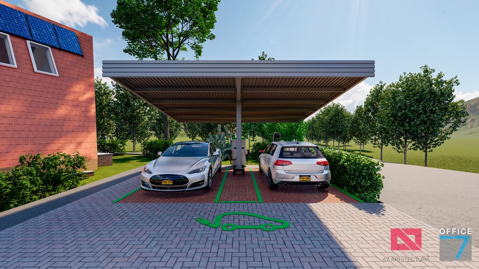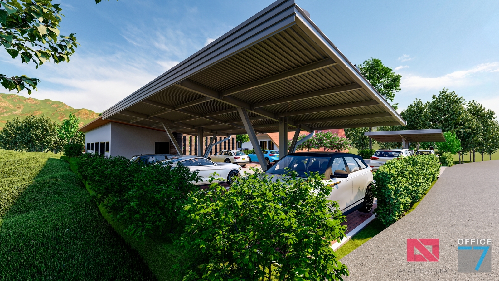 Proiectul este caracterizat printr-o structură metalică ce servește dublu rolul de a susține panourile solare și de a servi drept perogolă. Pe măsură ce continuăm să adoptăm soluții de energie regenerabilă, acest concept reprezintă o mărturie a angajamentului nostru față de un viitor mai verde și mai sustenabil.