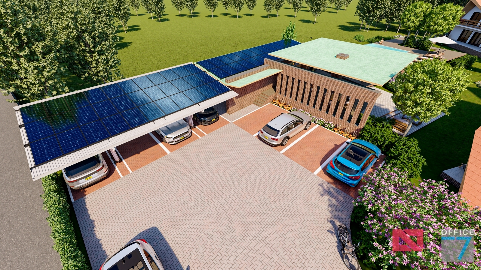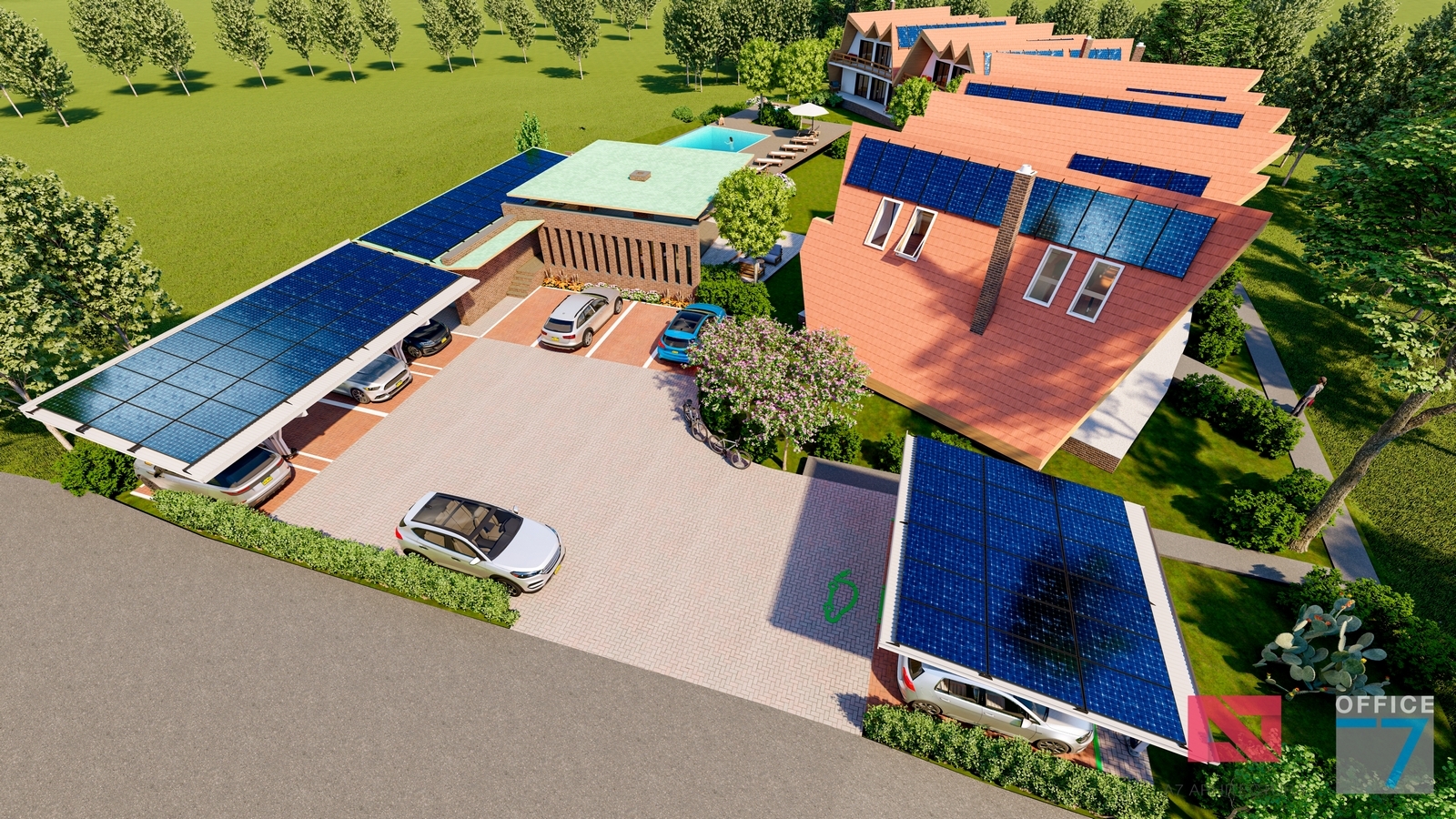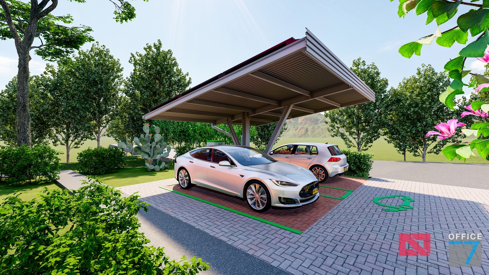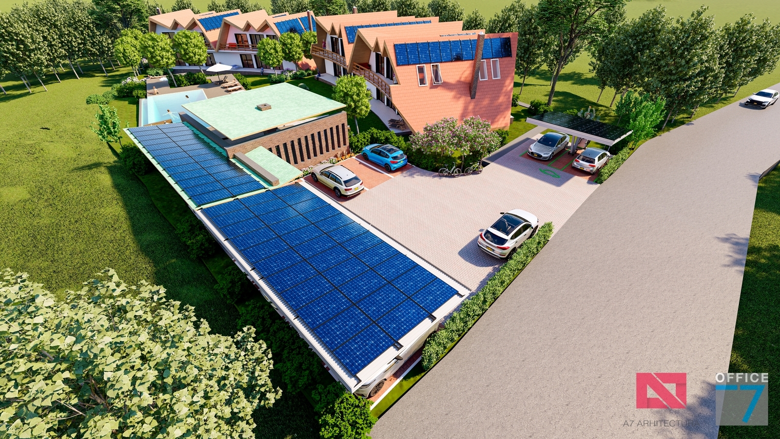 Proiectul este caracterizat printr-o structură metalică ce servește dublu rolul de a susține panourile solare și de a servi drept perogolă. Pe măsură ce continuăm să adoptăm soluții de energie regenerabilă, acest concept reprezintă o mărturie a angajamentului nostru față de un viitor mai verde și mai sustenabil.