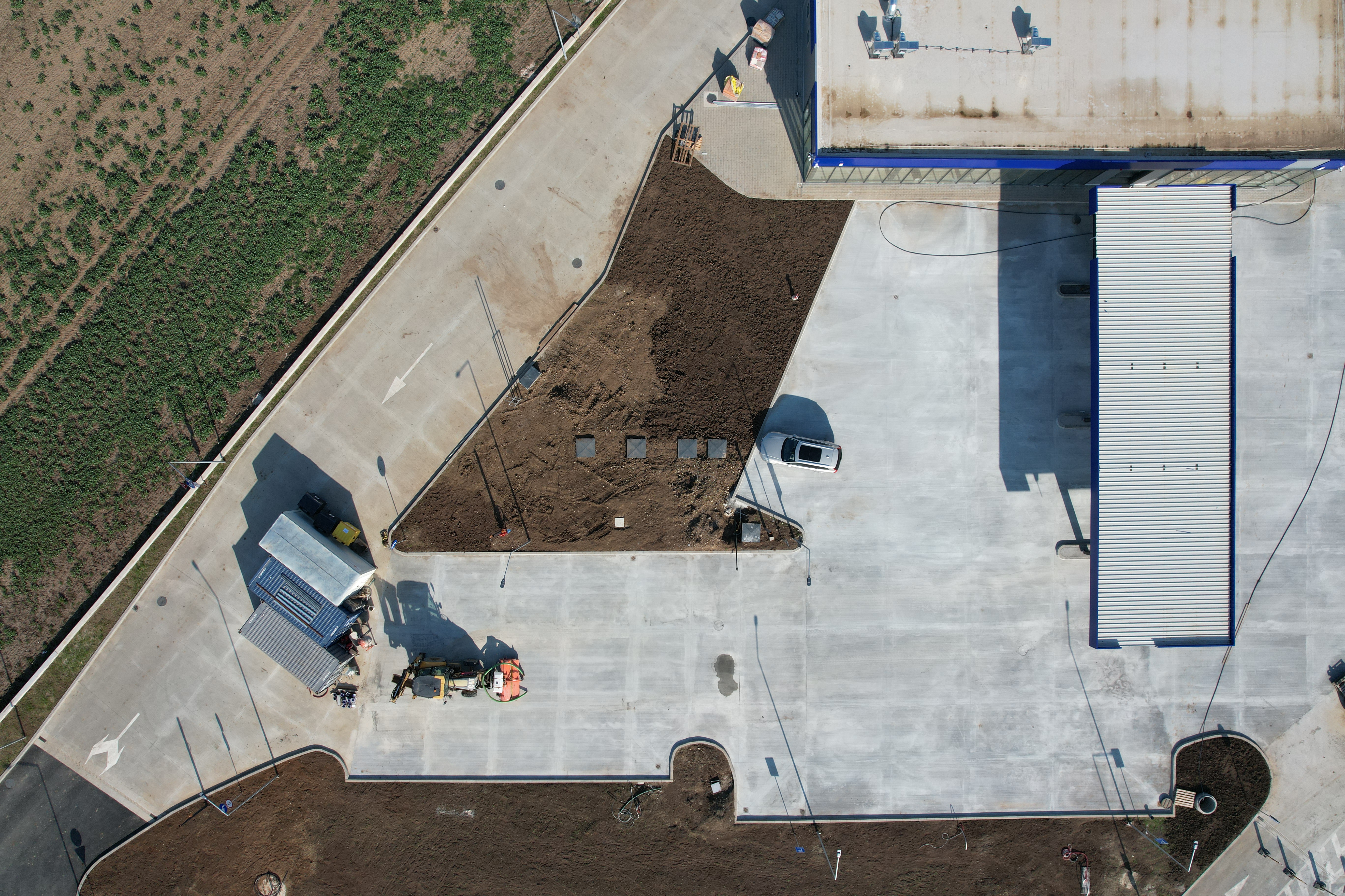 Etapa 1 – Finalizata si Receptionata 2023 – Parcarea Securizata nivel Platinum (CINEA) cu accese, intersectie la drum judetean, Cladire Servicii Soferi (lounge, toalete, bucatarie, dusuri, spalatorie).